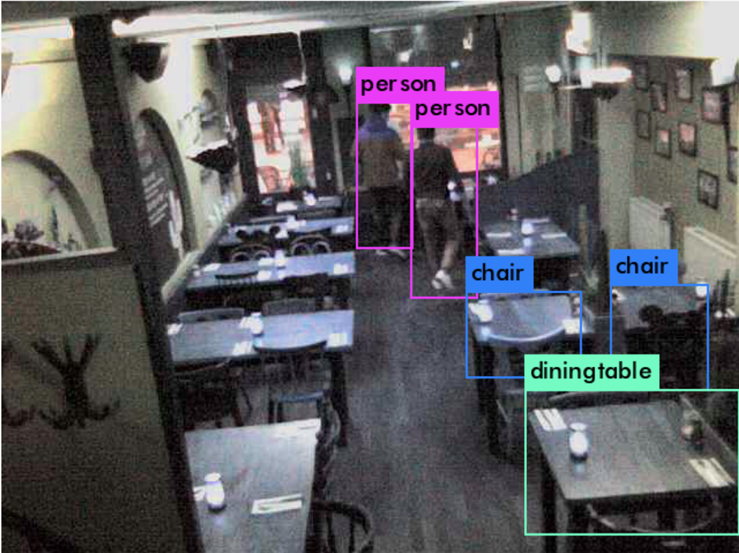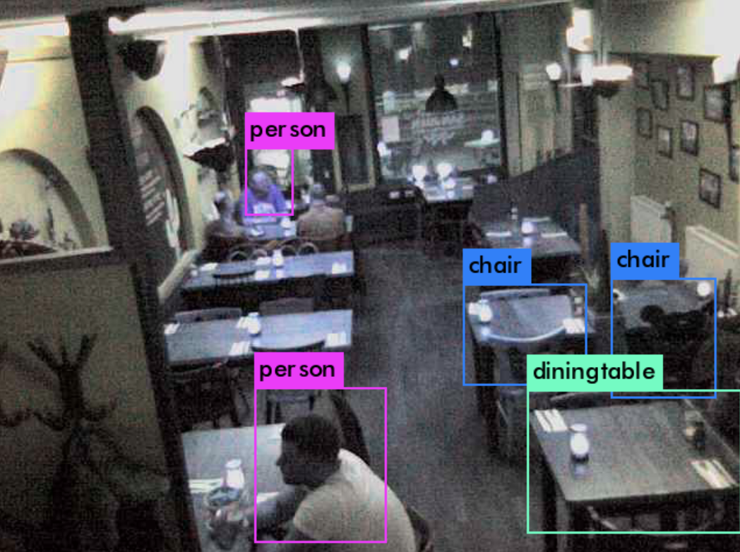 Examples of YOLO running on images from the restaurant webcam.